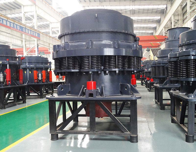 1、巖石破碎機(jī)采用底部液壓缸控制動(dòng)錐起落達(dá)到調(diào)整排礦口,同時(shí)利用液壓系統(tǒng)中蓄能器起過(guò)鐵保護(hù),省略了原彈簧圓錐破碎機(jī)的調(diào)整環(huán)、支承圈部及彈簧部,大大簡(jiǎn)化了設(shè)備的結(jié)構(gòu),結(jié)構(gòu)簡(jiǎn)單、運(yùn)行可靠。