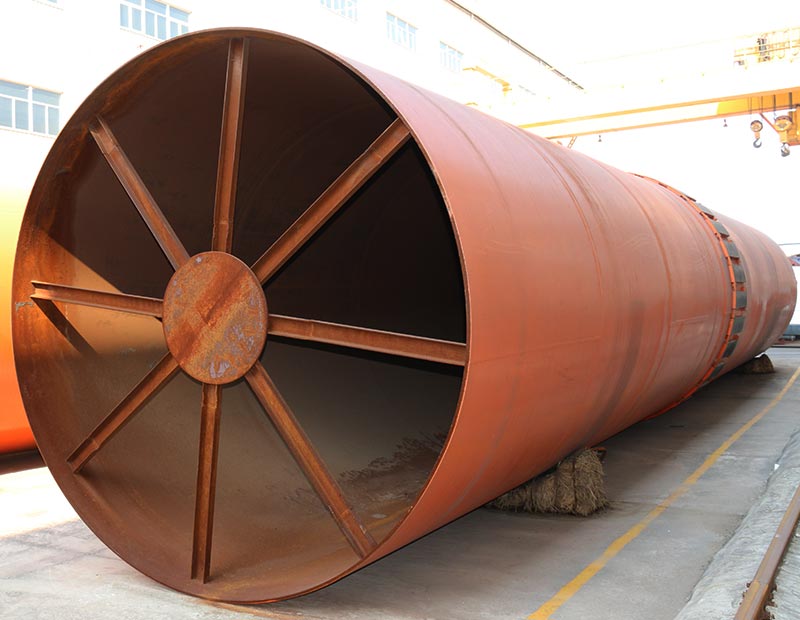 3、型煤烘干機(jī)圓筒是一個(gè)與水平線略成傾斜的旋轉(zhuǎn)圓筒。物料從較高一端加入,載熱體由低端進(jìn)入,與物料成逆流接觸,也有載熱體和物料一起并流進(jìn)入筒體的。