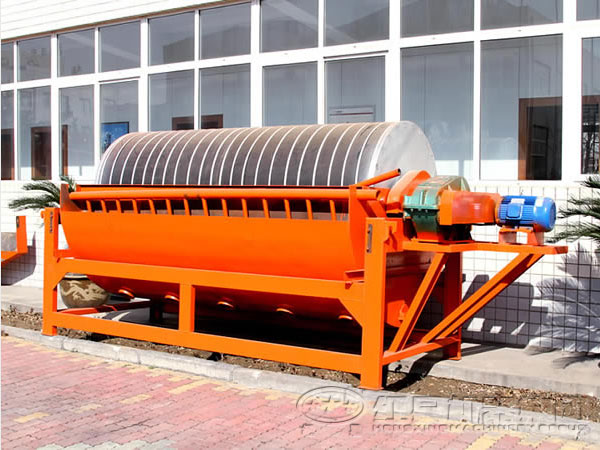 通過鏟車或者挖砂泵將海砂給入料倉中,經(jīng)皮帶輸送機(jī)運送至滾筒篩進(jìn)行篩分,滾筒篩接有沖水管,廢料篩出,符合粒度的海沙經(jīng)滾筒篩進(jìn)入兩臺濕式磁選機(jī)分別進(jìn)行粗選和精選作業(yè),最后獲得鐵精粉。海沙選鐵設(shè)備整套生產(chǎn)工藝原理較為簡單,處理量也較大,客戶可在短時間內(nèi)掌握操作要點。