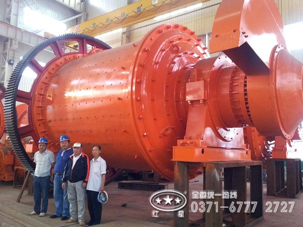 我公司生產(chǎn)銷量較好的大型球磨機(jī)是Ф5500×8500,即球磨機(jī)筒徑為5.5米,長度為8.5米。此型號的大型球磨機(jī)最大產(chǎn)量可達(dá)到615t/h,進(jìn)料粒度為≤25mm,裝量球最大為338t,電機(jī)功率4450kw。設(shè)備中空軸采用鑄鋼件,內(nèi)襯可拆換,回轉(zhuǎn)大齒輪采用鑄件滾齒加工,筒體內(nèi)鑲有耐磨襯板,具有良好的耐磨性。整個設(shè)備重量達(dá)到525噸,質(zhì)量完全可保證。