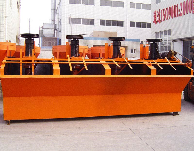 浮選機由電動機三角帶傳動帶動葉輪旋轉(zhuǎn),產(chǎn)生離心作用形成負壓,一方面吸入充足的空氣與礦漿混合,一方面攪拌礦漿與藥物混合,同時細化泡沫,使礦物粘合泡沫之上,浮到礦漿面再形成礦化泡沫。調(diào)節(jié)閘板高度,控制液面,使有用泡沫被刮板刮出。
