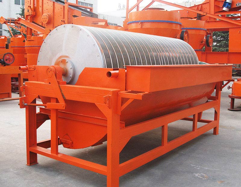 給礦箱將水渣送入槽體,在磁場的作用下,磁性礦粒發(fā)生磁聚而形成“磁團(tuán)”或“磁鏈”,受磁力的作用,向磁極運動,之后被吸附在圓筒上?!按艌F(tuán)”或“磁鏈”在隨圓筒旋轉(zhuǎn)時,會由于磁極交替產(chǎn)生磁攪拌現(xiàn)象,夾雜在“磁團(tuán)”或“磁鏈”中的脈石等非磁性礦物會在翻滾的過程中滾落下來,最終被吸在圓筒表面的“磁團(tuán)”或“磁蓮”即是精礦,非磁性或弱磁性礦物被留在礦漿中隨礦漿排出槽外,就是尾礦。