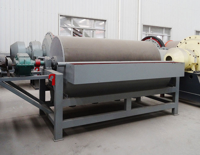 在電動機不斷的轉動中,提供了動能,磁性礦粒在不均勻磁場的作用下被磁化,受到磁場的吸引,吸在圓筒表面并隨圓筒旋轉,無磁性礦粒被吸在磁輥上,脈石粒在磁輥轉到前端位置時被拋出掉在隔礦板的前面,脫離磁力的吸引而被排出成為精礦,留在礦漿中隨礦流排出為尾礦。